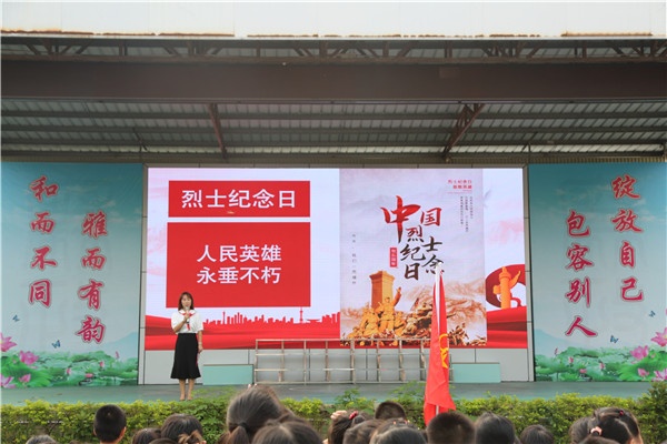 八點整,校園里響起莊嚴的國歌,鮮艷的五星紅旗緩緩升起,在場師生肅然而立,向國旗行注目禮,少先隊員行隊禮,進行國家烈士紀念日升旗儀式。全體師生通過觀看愛國影片《祖國不會忘記》、聆聽黃嘉欣主任的發(fā)言《緬懷先烈 紅色故事傳承革命精神》、全體師生齊唱《少年》和《中國少年先鋒隊隊歌》等方式深切緬懷為民族獨立、人民解放、國家富強、人民幸福英勇獻身的革命先烈,傳承弘揚革命精神,不忘初心、牢記使命。