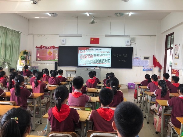 四五年級的學生則以《信念的顏色》為主題,講述了孟晚舟事件,描述了五星紅旗是信念的燈塔,中國紅是信念的顏色,“沒有大國崛起,何來民族的尊嚴”等內容,孟晚舟女士堅韌的品格、樂觀的精神以及身處困境仍不忘學習的習慣值得每個學生學習。班主任還讓學生上臺談感悟,說自己的想法。最后班主任借用梁啟超先生說的這句話:“少年智則國智,少年富則國富,少年強則國強!”去勉勵學生努力學習,做一名自強、自信的七彩少年。
