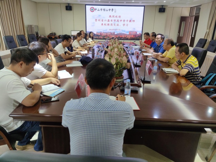 2021年10月11日,貴州省六盤水市10位高中骨干教師蒞臨桂山中學(xué),開啟一個(gè)月的跟崗交流學(xué)習(xí)。當(dāng)天上午,桂山中學(xué)在育賢樓會(huì)議室召開見面會(huì),中山市教育教學(xué)研究室何晉中主任、方勇教研員,桂山中學(xué)董再明校長 、嚴(yán)小堅(jiān)副校長、邱志權(quán)主任等領(lǐng)導(dǎo)熱情歡迎貴州同行的到來,希望老師們?cè)诠鹕接兴?、有感受、有收獲。