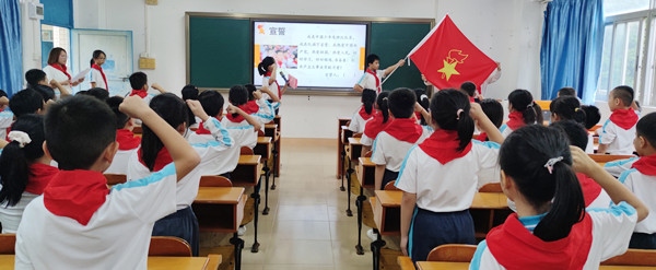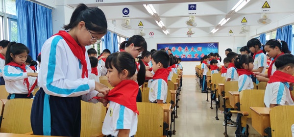 儀式前,學(xué)校通過對第二批入隊學(xué)生德智體美勞等方面的考察,經(jīng)由班主任與各任課老師評選,最終確定新隊員58名。同時,還組織同學(xué)們進行了隊前學(xué)習(xí)和入隊考核,讓他們對中國共產(chǎn)黨、少先隊組織有了更深入的了解。