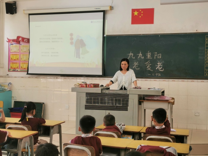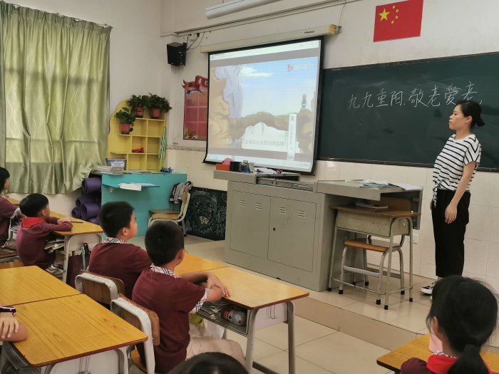 “百善孝為先" ,孝順父母,尊敬長(zhǎng)輩,是中華民族的傳統(tǒng)美德。新圩小學(xué)德育處陳文麗主任先通過廣播向全校學(xué)生發(fā)出倡議,引導(dǎo)學(xué)生要弘揚(yáng)中華民族尊老敬老的傳統(tǒng)美德,營(yíng)造良好的愛老助老社會(huì)氛圍,展現(xiàn)當(dāng)代新圩水滴娃的精神風(fēng)貌,倡議學(xué)生一要樹立敬老之心,二要奉獻(xiàn)孝老之意,三傳遞助老之情,學(xué)會(huì)關(guān)愛身邊的每一位老人, 讓老年人(尤其是自己身邊的爺爺奶奶、外公外婆)在重陽佳節(jié)過得更有價(jià)值、有意義,讓他們體會(huì)到節(jié)日的快樂,讓他們的生活更加幸福。接著由班主任老師通過PPT給學(xué)生講解重陽節(jié)的由來及意義,透過視頻故事更直接生動(dòng)地讓學(xué)生了解這一傳統(tǒng)節(jié)日---重陽節(jié)。