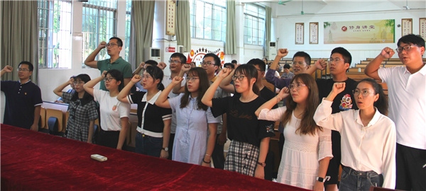 儀式伊始,黨支部楊明副書記致辭。他首先對各位入職教師的到來表示歡迎,并同老師們?nèi)轿环窒砹肆?xí)近平總書記針對教育戰(zhàn)線的重要講話精神。他還在致辭中希望新教師們能夠加強(qiáng)師德修養(yǎng),加強(qiáng)自身學(xué)習(xí),胸懷理想,充滿愛心,一腔熱血為教育,滿懷激情育桃李。