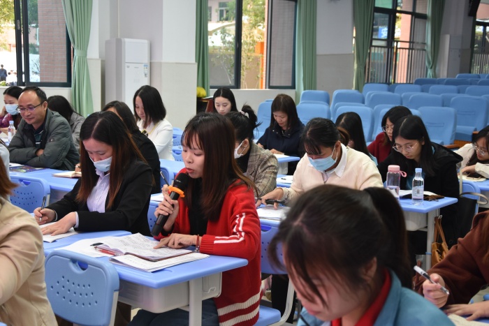 隨后,林妙麗老師和林月英老師為新老師們帶來(lái)了精彩的講座。林妙麗老師圍繞何為跨教材、跨教材教學(xué)資源的價(jià)值和跨教材教學(xué)資源的開(kāi)發(fā)與運(yùn)用三個(gè)方面展開(kāi)分享,鼓勵(lì)老師們整合教材,取長(zhǎng)補(bǔ)短,不斷豐富自己的教學(xué)環(huán)節(jié)。而林月英老師就新教師的專業(yè)成長(zhǎng)之路展開(kāi)分享。林老師肯定了年輕教師獨(dú)特的優(yōu)勢(shì),鼓勵(lì)老師們多讀書(shū),積極研究名師課堂,積極開(kāi)展課題研究,潛心學(xué)習(xí),博采眾長(zhǎng),并運(yùn)用到自己的教學(xué)中來(lái)。