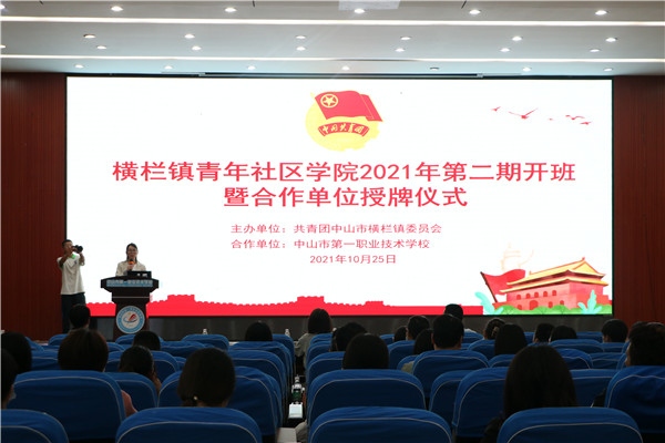 為充分發(fā)揮職業(yè)學(xué)校的人才場(chǎng)地優(yōu)勢(shì),推動(dòng)學(xué)校的對(duì)外培訓(xùn)工作, 10月25日晚,中山市第一職業(yè)技術(shù)學(xué)校舉辦了橫欄鎮(zhèn)青年社區(qū)學(xué)院2021年第二期課程開班暨合作單位授牌儀式。橫欄鎮(zhèn)團(tuán)委書記鄭靜爽,中山一職校企合作部主任蔡權(quán)、團(tuán)委書記李思文,橫欄鎮(zhèn)團(tuán)委和中山一職校企合作部工作人員,以及授課的老師和全體學(xué)員參加了活動(dòng)。儀式由校企合作部杜少勇老師主持。