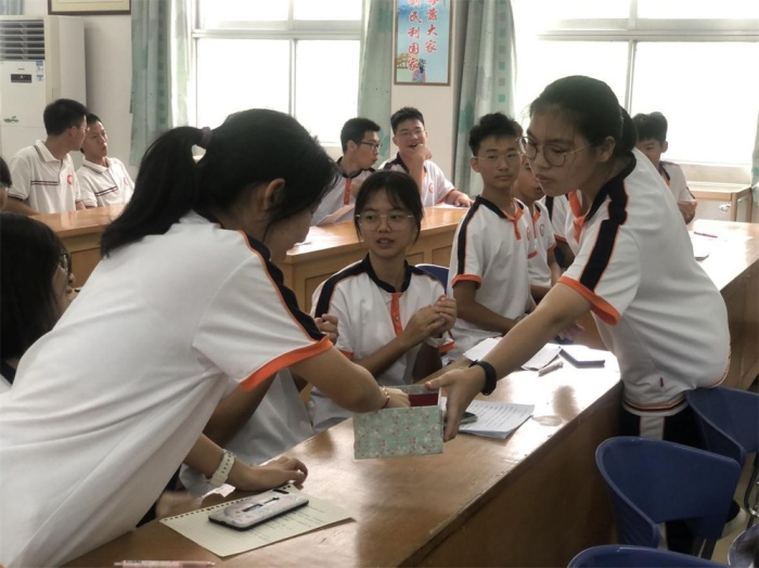 接下來(lái),活動(dòng)分批依次進(jìn)行。參賽選手抽簽后,根據(jù)順序前往直播室候場(chǎng)備賽,其余選手回到教室通過(guò)一體機(jī)觀摩賽況。直播間鏡頭下的選手們自信開(kāi)朗,侃侃而談,與賽場(chǎng)外觀摩直播的師生積極互動(dòng),涌現(xiàn)出一批“人氣主播”。專(zhuān)業(yè)課教師根據(jù)參賽選手的表現(xiàn)進(jìn)行實(shí)時(shí)點(diǎn)評(píng),與在教室收看直播的同學(xué)們分享直播干貨,同學(xué)們認(rèn)真地進(jìn)行學(xué)習(xí)記錄,并紛紛表示獲益良多。
