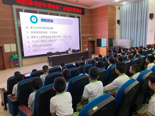 為加強(qiáng)青少年法治教育,進(jìn)一步提高學(xué)生自我保護(hù)意識(shí),10月19日下午,香暉園小學(xué)組織學(xué)生在報(bào)告廳開(kāi)展了主題為“用法律守護(hù)少年的你”普法進(jìn)校園專(zhuān)題講座活動(dòng)。