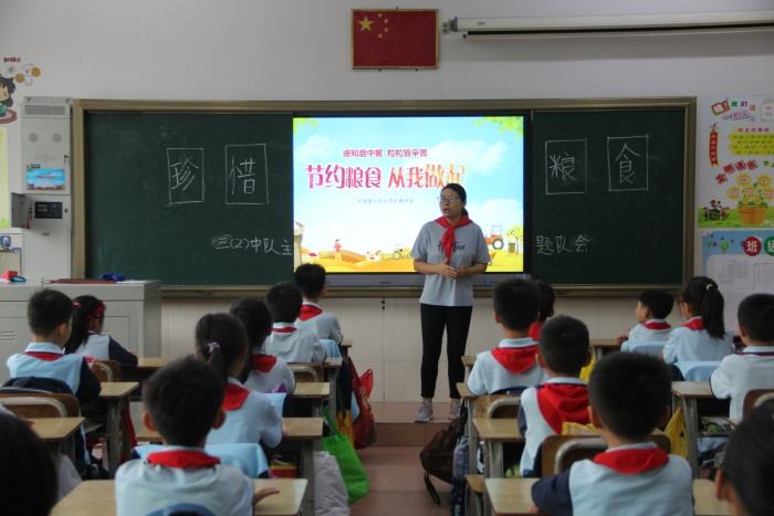 在各班主題隊(duì)會(huì)上,老師展示了貧困地區(qū)糧食稀缺的現(xiàn)狀以及社會(huì)上一些人浪費(fèi)糧食的現(xiàn)象,兩種對(duì)比,讓隊(duì)員們從內(nèi)心體會(huì)到糧食的來之不易以及“誰知盤中餐,粒粒皆辛苦”的深刻內(nèi)涵,并自覺承諾從現(xiàn)在做起,從自身做起,節(jié)約每一粒糧食,抵制和反對(duì)浪費(fèi)糧食的行為,養(yǎng)成愛糧節(jié)糧的好習(xí)慣。