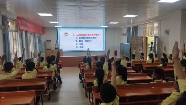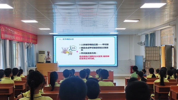 講座開始,首先由中山火炬開發(fā)區(qū)醫(yī)院鄧成主任為學(xué)生開展“碘缺乏病知識講座”,鄧醫(yī)生運用生動的語言,典型的案例,通過深入淺出的講解和示范,分別從什么是碘,什么是碘缺乏病,碘缺乏病的危害及癥狀,如何正確食用碘、怎樣預(yù)防碘缺乏病等多個方面向?qū)W生傳授碘缺乏病的防控知識。學(xué)生們認真的聽講,積極發(fā)言,明白了日常生活中不正確食用碘鹽的危害,以及平時在生活中如何正確補充“碘”。同學(xué)們?yōu)楦兄x鄧醫(yī)生的分享,現(xiàn)場響起一陣陣的掌聲。