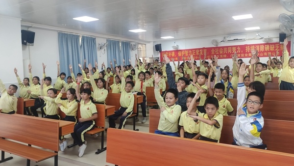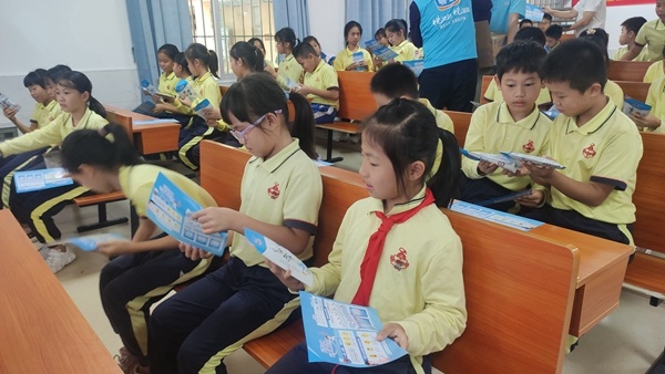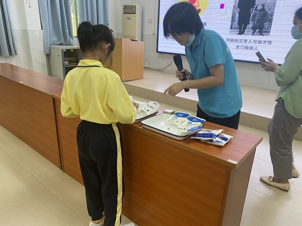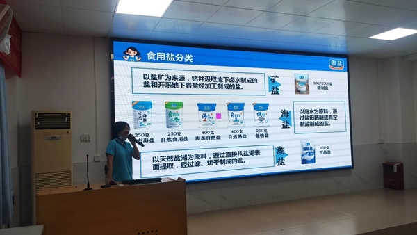 接著,由廣東省鹽業(yè)集團中山有限公司的老師介紹如何“安全用鹽 健康生活”,在講授的過程中讓學(xué)生了解到食鹽的分類,如何區(qū)分真假鹽,如何科學(xué)用鹽。在真假鹽辨別的環(huán)節(jié)中,在場的老師通過活動的形式教會了學(xué)生可以通過看包裝兩側(cè)折痕、查看鐳射防偽標(biāo)識等方法進行區(qū)分,在現(xiàn)場中還邀請同學(xué)一起做起了科學(xué)小實驗,學(xué)生們反應(yīng)熱烈,參與度極高。講座結(jié)束后,為了加深學(xué)生的理解,現(xiàn)場給每一位學(xué)生派發(fā)了宣傳單和一包小禮物“海鹽”,讓學(xué)生回去一同與家長們分享今天的活動。