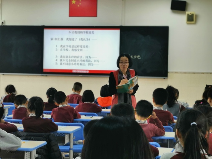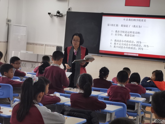 肖志紅校長始終認為學生才是課堂的主體,應給學生思考的空間,展示的舞臺,因此,這節(jié)課始終以學生自學、匯報為主,貼近學生的生活實際。以小組匯報為主的課堂形式,大大提高了道德與法治的課堂教學效率,鍛煉了學生的學習能力。