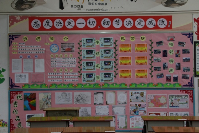 班級文化是一個班級的靈魂。每一張板報、每一幅圖畫、每一篇文章……所有細節(jié)的精心安排無不體現(xiàn)班級的凝聚力和創(chuàng)造力,展示師生們的審美情趣和文藝才華,詮釋著班級成員的理想和信念。