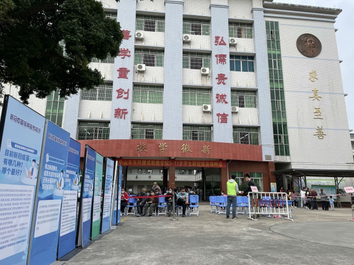 當(dāng)前國(guó)內(nèi)外疫情形勢(shì)依然嚴(yán)峻復(fù)雜,接種新冠疫苗,構(gòu)建群體免疫屏障,是阻斷新冠病毒傳播、保障全民健康的有效手段。接上級(jí)的疫苗接種通知,中山市東鳳穗成新徽學(xué)校認(rèn)真落實(shí)上級(jí)相關(guān)決策部署,東鳳疫情防控指揮部負(fù)責(zé)人黃春光到學(xué)校對(duì)接種點(diǎn)的相關(guān)工作進(jìn)行了指導(dǎo),醫(yī)護(hù)人員與全體教師群策群力、通力合作,順利完成學(xué)生新冠疫苗接種工作。