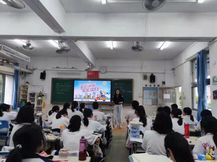 活動期間,校道兩旁精心布置了提醒家長騎乘兩輪車需佩戴安全頭盔的橫幅標(biāo)語,蔡冠深大禮堂LED大屏幕滾動播放著“爸爸媽媽,不戴頭盔我不上車”的小視頻,吸引不少學(xué)生駐足觀看。同時,活動也深入到課堂內(nèi)部,學(xué)校各班級組織召開“戴頭盔,安全出行”主題班會課,班會課上班主任以PPT的形式向?qū)W生普及交通安全規(guī)則和交通安全常識,明確步行時和開車時所需要注意的安全細(xì)節(jié),給學(xué)生帶來不少交通安全干貨,還回收了具有家長和學(xué)生簽名的戴頭盔《承諾書》。在學(xué)校宣傳教育的強(qiáng)大感染下,同學(xué)們身體力行,自發(fā)組成志愿者組織,課后時間在校門口舉起“不戴頭盔,我不上車”、“請戴頭盔”等標(biāo)語提醒前來接送的家長和來往的駕駛者,真正形成學(xué)生、家長和學(xué)校三方的有效聯(lián)動,充分發(fā)揮學(xué)?!靶∈掷瓌哟笫帧钡膸幼饔谩?/p>