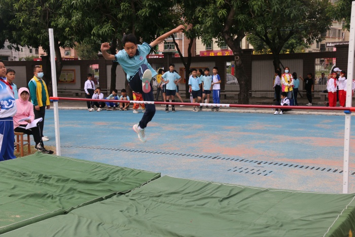比賽高潮出現(xiàn)在下午的男子和女子4×100米接力賽上,隨著發(fā)令員的一聲槍響,運動員們英姿勃發(fā),鼓足干勁往前跑。瞧,“小蘇炳添”們緊握著拳頭,憋紅的小臉。運動員們有一個共同的目標:為班級爭光。賽場下,啦啦隊們?yōu)殛爢T吶喊助威,歡呼聲,喝彩聲,鼓掌聲不絕于耳。接著,進行的是體育節(jié)小項目考核:立定跳遠和25米往返跑。學(xué)生們自信倍增,意氣風(fēng)發(fā),奮力奔跑。