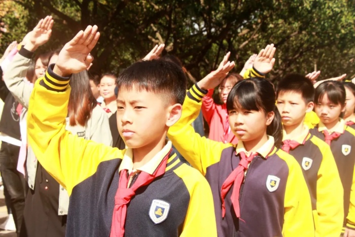11月12日11點(diǎn)12分,中山市三鑫學(xué)校校長(zhǎng)黃建軍、校監(jiān)楊要武、初中部校長(zhǎng)杜業(yè)富、德育副校長(zhǎng)江叔良等管理人員及學(xué)生代表,在孫中山先生銅像前隆重舉行紀(jì)念孫中山先生誕辰155周年活動(dòng),緬懷他為民族獨(dú)立、社會(huì)進(jìn)步、人民幸福建立的不朽功勛,弘揚(yáng)他的革命精神和崇高品德,以此激勵(lì)全校師生為實(shí)現(xiàn)中華民族偉大復(fù)興而團(tuán)結(jié)奮斗。
