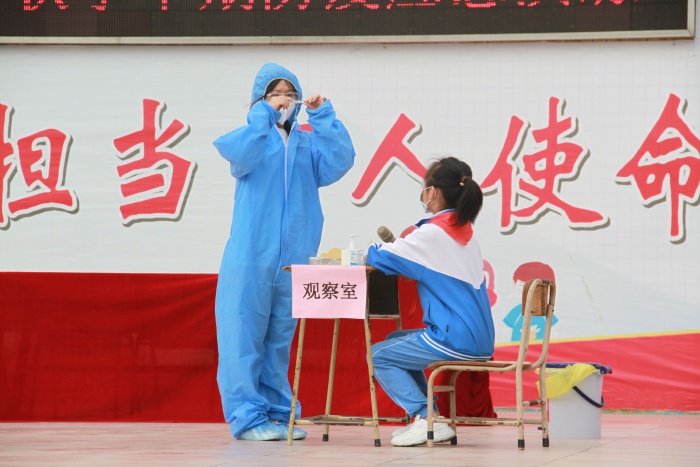 隨后,在總務處的組織下進行了防疫工作應急演練??倓仗幋砝顚毭髦魅尉脱菥毠ぷ鬟M行了小結,并對下階段學校疫情防控工作進行了布置。