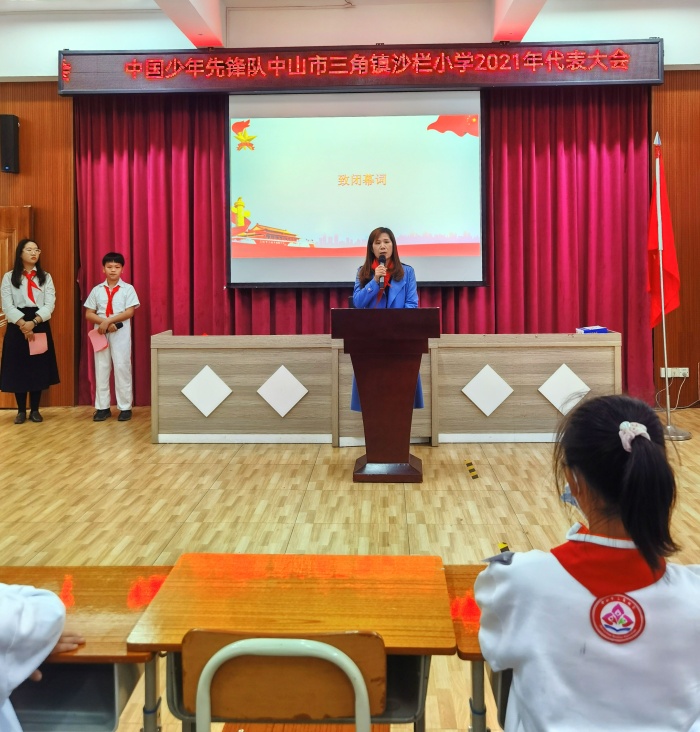 12月20日,中國(guó)少年先鋒隊(duì)中山市三角鎮(zhèn)沙欄小學(xué)2021年代表大會(huì)在沙欄小學(xué)一樓階梯室召開。中山市三角鎮(zhèn)團(tuán)委副書記、少先隊(duì)總輔導(dǎo)員許嘉天老師,沙欄小學(xué)黨支部書記崔煥英校長(zhǎng)、副校長(zhǎng)黎文輝、家委代表、行政代表、輔導(dǎo)員代表以及少先隊(duì)員代表共74人出席了本次會(huì)議。