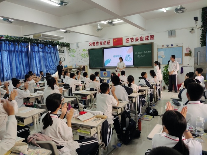 近日下午的班會(huì)課,初一年級(jí)各班級(jí)教室傳來陣陣掌聲和歡呼聲,原來是僑中初三年級(jí)第一批學(xué)長(zhǎng)團(tuán)成員來到初一年級(jí)各班教室,開展首次學(xué)習(xí)經(jīng)驗(yàn)分享交流活動(dòng)。
