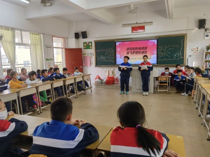 2021年12月31日下午,以班級(jí)為單位開展的“辭舊迎新表感恩 放飛夢(mèng)想樂成長”主題班會(huì)活動(dòng)正開展得如火如荼。各班正副班主任充分發(fā)揮聰明才智,圍繞主題,組織了豐富多彩的辭舊迎新主題活動(dòng)?;蛑v述元旦的來歷,或暢談新年的祝愿,或組織驚喜禮物交換會(huì),或用畫筆畫下新年美好祝福,或由班級(jí)學(xué)生自己設(shè)計(jì)、組織新年聯(lián)歡會(huì),學(xué)生熱情高漲,積極參與,充分發(fā)揮自己的特長,武術(shù)、朗誦、小品、游戲等節(jié)目一一亮相,現(xiàn)場(chǎng)精彩紛呈,笑聲連連。