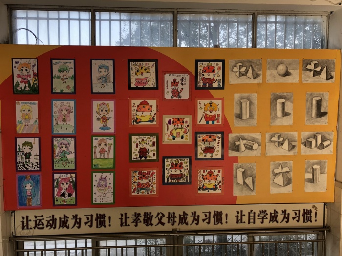 此次書畫展以“繪畫展風(fēng)采,墨香慶元旦”為主題。在全校師生的精心準備下,共收到繪畫、書法、手工等各類作品近100件,各個興趣小組的學(xué)生以飽滿的熱情,創(chuàng)作出了自己最得意的作品。本次書畫展主要分為三大板塊:繪畫作品、書法作品以及手工立體構(gòu)成作品和輕黏土作品。展出的作品形式多樣,可謂亮點紛呈。