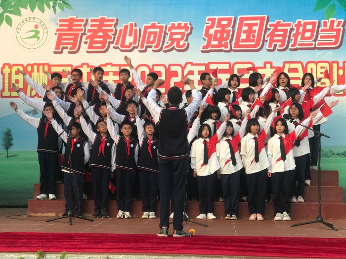 當(dāng)日歷翻開新的一頁,小樹又要增加一個(gè)年輪,我們歡聚一堂,唱響青春。二2班以一首《團(tuán)結(jié)就是力量》拉開大合唱帷幕,雄厚有力、整齊劃一的聲音傳遞著中華兒女勠力同心,共克時(shí)艱的決心與信心。愛國,是一種堅(jiān)定的民族精神,是一種振興中華的責(zé)任感。二1班通過一首《我的中國心》向全體師生表達(dá)了一種強(qiáng)大的精神力量,不畏艱難險(xiǎn)阻,創(chuàng)造屬于我們祖國的輝煌成就。未來屬于青年,希望寄予青年。一3班通過一首《少年中國說》述說著青年的夢想,青年的努力以及青年對未來的憧憬、期望,說唱結(jié)合,展現(xiàn)青年的活力與朝氣。黃河孕育偉大的中華文明,三2班以一首《保衛(wèi)黃河》唱出對黃河的禮贊,歌曲聲音洪亮,氣勢恢弘,鋼琴伴奏,增添了獨(dú)特的味道。每個(gè)周一,國歌想起,五星紅旗冉冉升起,三3班通過男女輪唱、齊唱等方式演奏《紅旗飄飄》,唱出“此生無悔入華夏”的驕傲與自豪。2021年,我們迎來建黨100周年,100年來,我們祖國發(fā)生翻天覆地的變化,三1班通過深情演繹一首《我愛你中國》表達(dá)了對祖國母親無限的感激之情。中華少年,風(fēng)華正茂,少年的夢就是中國夢,一2班通過一首《少年強(qiáng)》將大合唱推向高潮,慷慨激昂的曲調(diào),讓我們相信少年的未來就是中國的未來。沒有中國共產(chǎn)黨,就沒有現(xiàn)代化的中國,一1班廖文輝、李家欣以一段精彩的演講引入一首《沒有共產(chǎn)黨就沒有新中國》,科技創(chuàng)造未來,伴隨著一面黨旗從空中飛過,一1班放聲歌唱,深情傾訴對中國共產(chǎn)黨的驕傲與自豪。初心不忘青春志、匠心共筑中國夢,教師代表卞堪佐、吳境聰、黎小玲、劉秀平、肖偉芳領(lǐng)唱,全校師生共同演繹《不忘初心》,嘹亮的歌聲將此次大合唱落下帷幕。