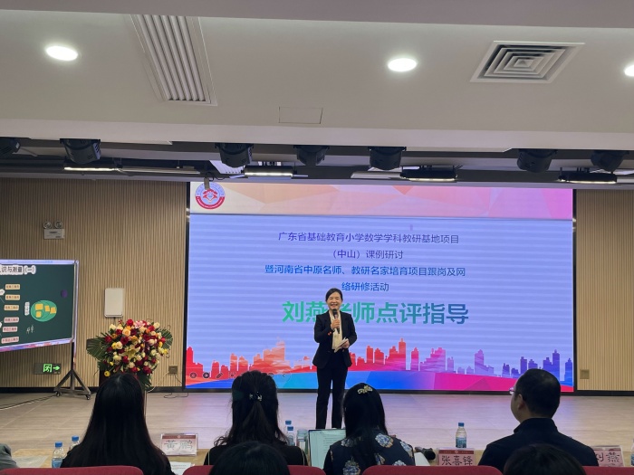 為推進(jìn)“像數(shù)學(xué)家一樣探究”課程建設(shè),落實(shí)前置探究性學(xué)習(xí)的課堂實(shí)施,促進(jìn)教師專(zhuān)業(yè)發(fā)展,3月31日上午,廣東省小學(xué)數(shù)學(xué)學(xué)科教研基地項(xiàng)目(中山)課例研討暨河南省中原名師、教研名家培育項(xiàng)目跟崗及網(wǎng)絡(luò)研修第五場(chǎng)活動(dòng)在南頭鎮(zhèn)將軍小學(xué)拉開(kāi)了帷幕。參加此次活動(dòng)的有廣東省小學(xué)數(shù)學(xué)學(xué)科教研基地(中山)項(xiàng)目主持人、河南省中原名師、教研名家培育項(xiàng)目實(shí)踐導(dǎo)師、中山市教育教學(xué)研究室小學(xué)數(shù)學(xué)教研員劉燕老師,河南省中原名師團(tuán)隊(duì)、教研名家培育項(xiàng)目的跟崗學(xué)員,南頭鎮(zhèn)教育和體育事務(wù)中心謝桂華主任,中山市教育督學(xué)呂鑒添校長(zhǎng),南頭鎮(zhèn)將軍小學(xué)胡映芬校長(zhǎng)以及南頭鎮(zhèn)全體數(shù)學(xué)教師。此次活動(dòng)為全市小學(xué)數(shù)學(xué)教師進(jìn)行了現(xiàn)場(chǎng)直播。