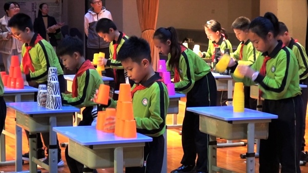 接著由三年級(jí)同學(xué)帶來(lái)表演“競(jìng)技疊杯”,同學(xué)們手疾如風(fēng),眼睛緊緊盯著自己的疊杯,聚精會(huì)神,在體驗(yàn)速度的同時(shí)感受數(shù)學(xué)的內(nèi)在魅力,鍛煉思維的同時(shí)收獲成功的喜悅,引得臺(tái)下的觀眾發(fā)出陣陣掌聲。