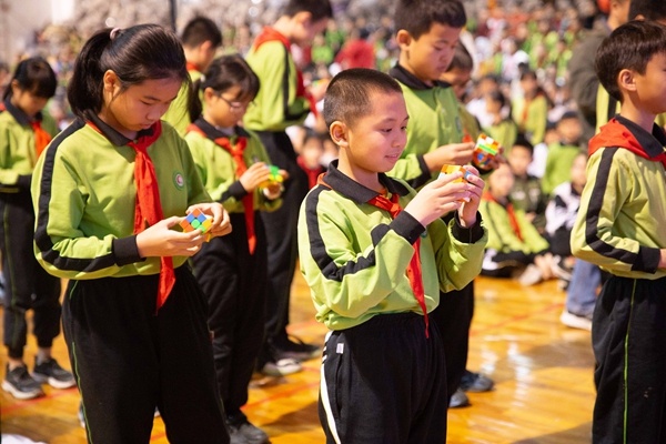 緊接著,校魔方團(tuán)隊(duì)的表演者們給大家?guī)?lái)了精彩的魔方復(fù)原表演,通過(guò)現(xiàn)場(chǎng)同學(xué)隨機(jī)打亂,在短時(shí)間內(nèi)把魔方成功復(fù)原,精彩的表演贏得了臺(tái)下熱烈的掌聲。隨著現(xiàn)場(chǎng)的氣氛推向高潮,江彬老師介紹了數(shù)學(xué)節(jié)的各種游戲,闡述了數(shù)學(xué)節(jié)活動(dòng)的開(kāi)展對(duì)提高孩子數(shù)學(xué)學(xué)習(xí)積極性的重要意義,強(qiáng)調(diào)用數(shù)學(xué)思維和數(shù)學(xué)的眼光來(lái)解決數(shù)學(xué)游戲。