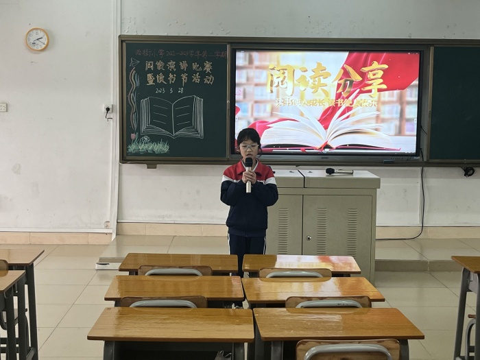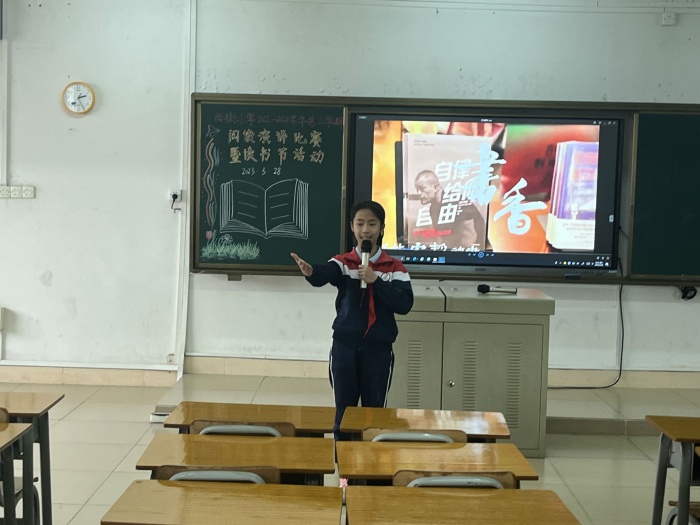 隨后,語文科組長施秋怡老師代表評委老師對本次演講比賽進行了總結(jié)和點評。施老師首先肯定同學們的精心準備。其次是鼓勵同學們繼續(xù)努力,養(yǎng)成熱愛閱讀的好習慣。最后,施老師號召全體同學不但要自己讀書,還要帶領身邊的同學一起讀書,讓西小校園的每個角落都彌漫著書香的味道。