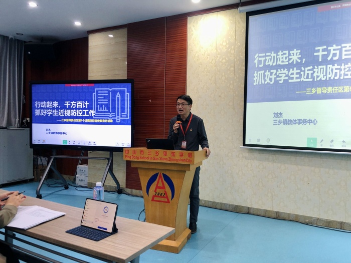 為進(jìn)一步加強(qiáng)學(xué)生視力保護(hù)工作,有效防治和干預(yù)近視。3 月 20 日, 責(zé)任督學(xué)、 中山市學(xué)校健康教育百師宣講團(tuán)副團(tuán)長劉杰校長到平東學(xué)校作了一場精彩的近視防控專題講座。講座由任小華副校長主持,全體教職工參加了培訓(xùn)。
