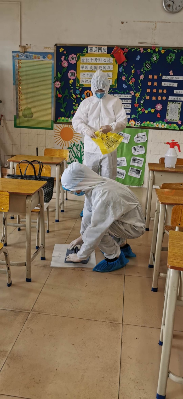 此次模擬實戰(zhàn)演練共設(shè)三個場景,分別模擬學(xué)生有序入校、課堂學(xué)習(xí)、教室就餐的防控措施及應(yīng)急處置工作,并且重點演練教室出現(xiàn)“學(xué)生”體溫異常情況的應(yīng)急處置,覆蓋了為學(xué)生初測體溫、引導(dǎo)體溫異常者至臨時醫(yī)學(xué)隔離區(qū)、復(fù)測體溫、上報信息、轉(zhuǎn)送、消殺等環(huán)節(jié),完整模擬了疑似病例的處理流程及應(yīng)急場景的處置過程。