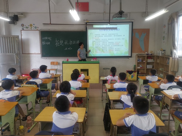 活動(dòng)中,各班主任通過(guò)多媒體出示生活中隨處可見(jiàn)的亂扔垃圾的圖片,讓學(xué)生們暢所欲言,說(shuō)說(shuō)自己從圖片中發(fā)現(xiàn)了什么,并向?qū)W生們仔細(xì)講解了垃圾的來(lái)源。接著,老師們進(jìn)行小結(jié),強(qiáng)調(diào)亂扔垃圾行為的可恥,希望每位學(xué)生都能做講文明講衛(wèi)生的小學(xué)生。最后,老師們帶著學(xué)生再一次重溫了“社會(huì)主義核心價(jià)值觀”和《小學(xué)生文明守則》的相關(guān)內(nèi)容,每位學(xué)生嚴(yán)肅、認(rèn)真地進(jìn)行宣誓:拒絕亂扔垃圾,做個(gè)文明的小學(xué)生,為創(chuàng)文做貢獻(xiàn),文明行為從我做起!