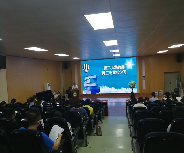 打印 |為了確保學(xué)校合理發(fā)展,教師建設(shè)順利開展,9月11日,曹二小學(xué)在報告廳召開第二周全體教師業(yè)務(wù)學(xué)習。本次會議由曹二小學(xué)校長邱波主持,副校長李培新、教導(dǎo)主任許琰、德育主任連雪梅、教導(dǎo)處副主任朱運有等全校教師參加了本次會議。