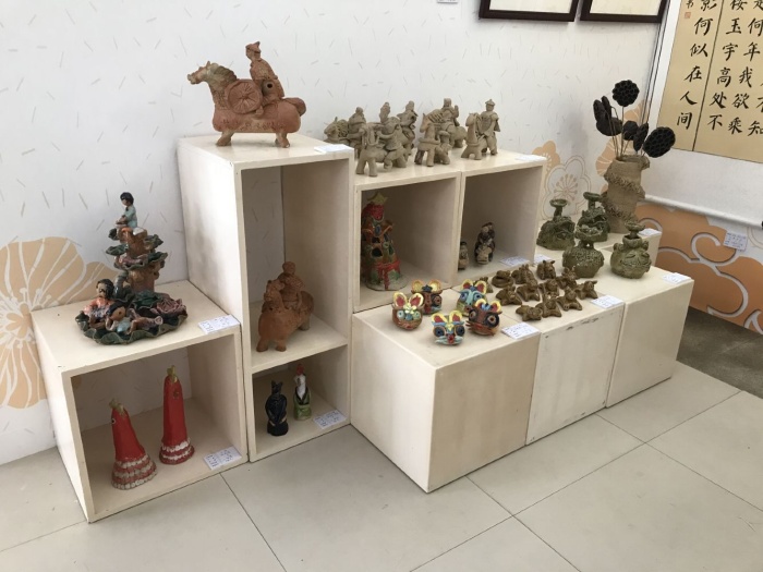 這次展覽以傳統(tǒng)文化為基調(diào),鎮(zhèn)南小學(xué)將陶藝和曹二小學(xué)的超輕粘土和國畫、海洲第二小學(xué)的書法和軟陶融合在一起。其中,鎮(zhèn)南小學(xué)陶藝社團(tuán)學(xué)生展出的作品有《十二生肖》、《兵馬俑》、《布老虎》、《童年趣事》、《油燈》等等,均為社團(tuán)歷屆精品之作,作品題材多樣,造型富有童趣,為省市鎮(zhèn)各級領(lǐng)導(dǎo)和各鎮(zhèn)區(qū)兄弟學(xué)校教師展示了豐富的陶藝社團(tuán)成果,展現(xiàn)了鎮(zhèn)南陶藝學(xué)子較高陶藝技藝水平,引來觀眾駐足欣賞和了解社團(tuán)開展情況,屢受領(lǐng)導(dǎo)和老師們的好評和肯定。三校作品洋溢在美感、創(chuàng)新和想象的氛圍中,展現(xiàn)出古鎮(zhèn)鎮(zhèn)美育工作的蓬勃生命力!