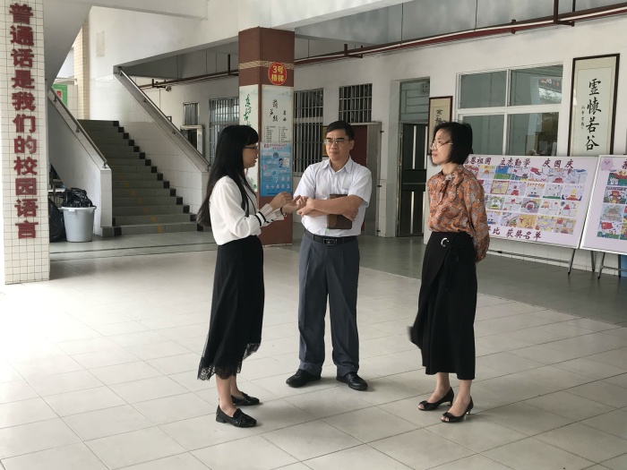 調(diào)研第二項(xiàng)是聽(tīng)取匯報(bào)。馮紅燕校長(zhǎng)對(duì)學(xué)校近期德育工作做了總體的匯報(bào),同時(shí)也提出了學(xué)校所面臨的問(wèn)題以及困難。黃燕芬副校長(zhǎng)則以《以美育人》為題,圍繞學(xué)校德育工作重點(diǎn)和“美行”教育實(shí)際,匯報(bào)學(xué)校在師德教育、學(xué)生管理、特色社團(tuán)設(shè)置等方面的做法和效果。