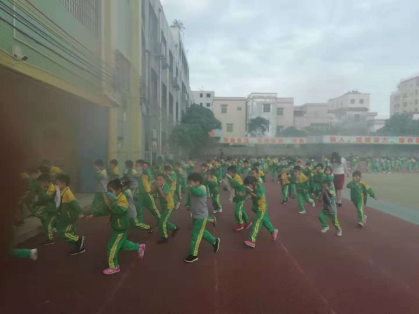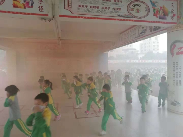 隨著警報(bào)聲的響起,巨大的濃煙掩蓋教學(xué)樓,橫欄港源學(xué)校消防演習(xí)正式開始了。老師們迅速就位,同學(xué)們按事前安排好的路線,低頭、用濕毛巾或濕紙巾捂嘴,隊(duì)伍穿越滾滾濃煙,撤離到籃球場(chǎng)。當(dāng)來(lái)到安全地帶后,班主任迅速整理隊(duì)伍,接著,由張勇主任向全體師生講解了對(duì)于避免校園火災(zāi)的基本要求,如何及時(shí)準(zhǔn)確地報(bào)警,在遭遇火災(zāi)時(shí)有效處理辦法等消防知識(shí)。