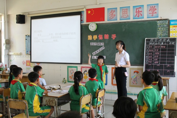 本次研討活動(dòng)分三個(gè)環(huán)節(jié)進(jìn)行。首先由橫欄港源學(xué)校劉瑩老師進(jìn)行課堂教學(xué)展示,劉老師結(jié)合即將到來的端午節(jié),設(shè)計(jì)了一堂《動(dòng)手包粽子》的綜合實(shí)踐課。在精彩巧妙的教學(xué)環(huán)節(jié)中,在寓教于樂的教學(xué)氛圍中,同學(xué)們動(dòng)口、動(dòng)手又動(dòng)腦,小組成員合作一起實(shí)踐操作,學(xué)習(xí)包粽子。課后,劉瑩老師就自己所設(shè)計(jì)的課堂教學(xué)活動(dòng)進(jìn)行了反思,提出了自己對(duì)三年級(jí)綜合實(shí)踐活動(dòng)教學(xué)的認(rèn)識(shí)以及自身的不足之處。接著,各校綜合實(shí)踐活動(dòng)老師代表分別對(duì)劉老師的課堂教學(xué)進(jìn)行了評(píng)價(jià),充分地肯定了劉老師教學(xué)準(zhǔn)備很充分,選擇的課題貼近學(xué)生生活,在教學(xué)中條理清晰,重點(diǎn)突出,注重培養(yǎng)學(xué)生參與課堂的興趣及動(dòng)手實(shí)踐能力,并對(duì)教學(xué)當(dāng)中出現(xiàn)的實(shí)際問題提出了自己的意見和建議。