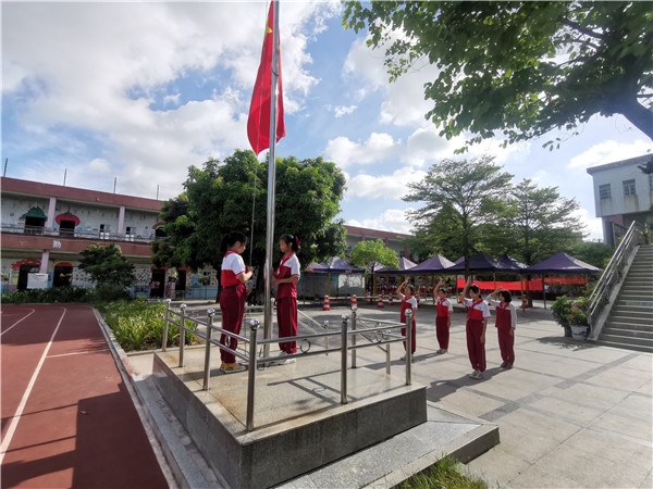 全體師生莊嚴(yán)肅穆面向國(guó)旗,國(guó)歌聲響徹校園,一只只舉起的小手,都是對(duì)祖國(guó)一份份的敬意,身為新時(shí)代的祖國(guó)花朵,應(yīng)努力學(xué)習(xí),奮發(fā)向上,為建設(shè)祖國(guó)出一份力。