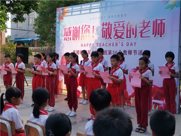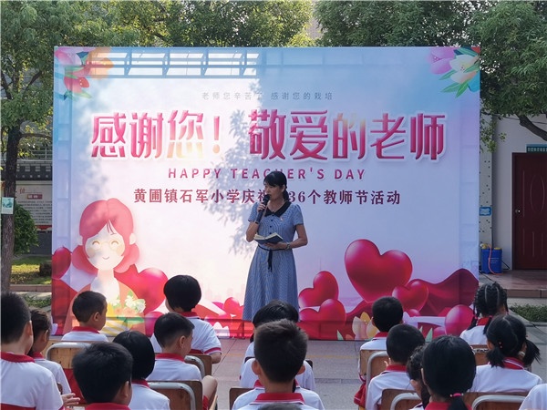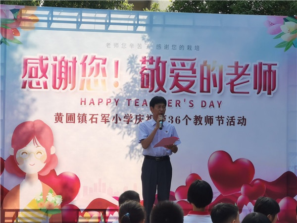 為營(yíng)造濃郁的尊師重教節(jié)日氛圍,激發(fā)教師不忘初心、立德樹(shù)人的責(zé)任感;培養(yǎng)學(xué)生尊師敬師、學(xué)會(huì)感恩的人格品質(zhì)。黃圃鎮(zhèn)石軍小學(xué)開(kāi)展了“感謝您!敬愛(ài)的老師”為主題的簡(jiǎn)短而隆重的慶?;顒?dòng)。本次活動(dòng)由大隊(duì)輔導(dǎo)員梁毅強(qiáng)老師主持。