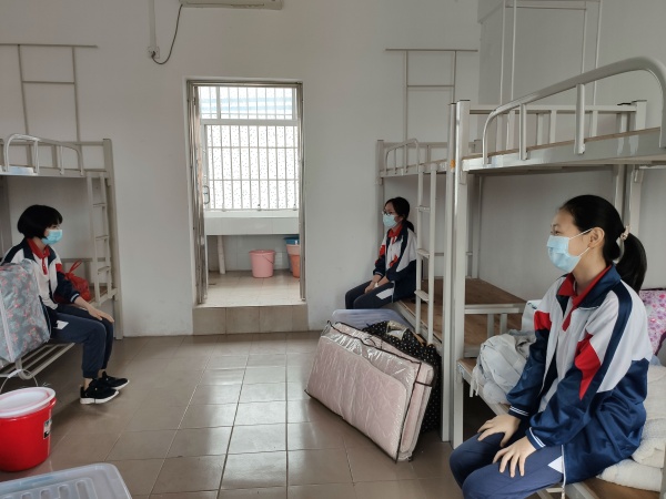 第一批次完成后,馬上組織第二批次的住宿生測(cè)量體溫,進(jìn)入校門(mén),直達(dá)宿舍放行李后,在自己的床鋪上等候廣播通知,錯(cuò)峰下樓,保持間隔一米以上,由老師帶隊(duì)到檢測(cè)點(diǎn)檢測(cè)。檢測(cè)完成后,要求學(xué)生聯(lián)系在校門(mén)外等候的家長(zhǎng),立即離開(kāi)學(xué)校。
