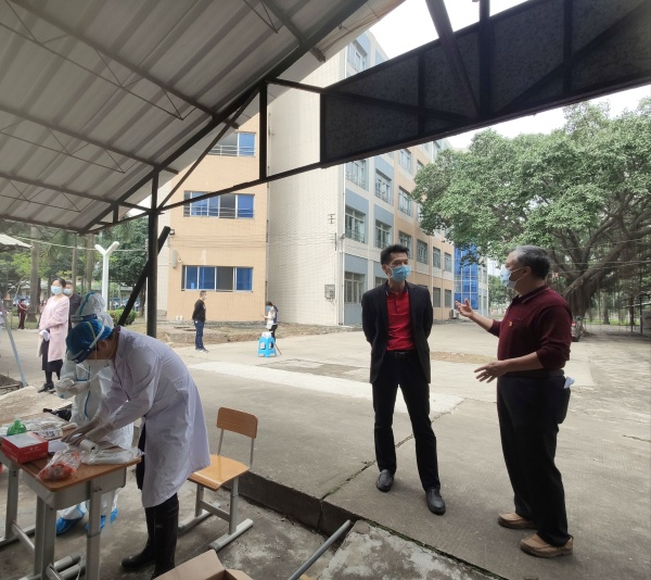 為認(rèn)真貫徹落實(shí)省教育廳關(guān)于初中高中畢業(yè)年級(jí)返校復(fù)課的決策部署,迎接即將到來(lái)的開(kāi)學(xué)復(fù)課,做好校園防疫工作,4月25日,南頭鎮(zhèn)初級(jí)中學(xué)在盧新泉校長(zhǎng)的帶領(lǐng)下,開(kāi)展南頭鎮(zhèn)初級(jí)中學(xué)初三級(jí)學(xué)生及外鎮(zhèn)就讀畢業(yè)生的核酸檢測(cè)工作,鎮(zhèn)黨委薛焯明、鎮(zhèn)文體教育局吳永高局長(zhǎng)一行蒞臨學(xué)校指導(dǎo)工作。