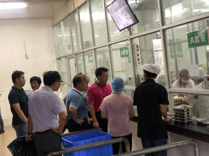 而后,一行人來到學校飯?zhí)?,?zhèn)領導向學校領導班子深入了解學生就餐情況,認真詢問學校食堂負責人飯菜供應品種、質量和價格。檢查工作中,薛委員要求負責人要在食品進貨、材料儲存、食品加工、飯菜打包等方面要把工作做細做扎實。同時,他指出,學??倓仗幰袑嵐芾砗?、監(jiān)督好食堂的衛(wèi)生安全工作,加強監(jiān)督管理,把食品衛(wèi)生安全的管理和監(jiān)督工作落到實處。如,每日飯?zhí)貌似诽崆芭恼崭嬷倓仗帲员慵皶r作出調整。他強調,將心比心,要站在家長的角度去思考問題,為孩子們舌尖上的安全保駕護航是學校和政府的責任。