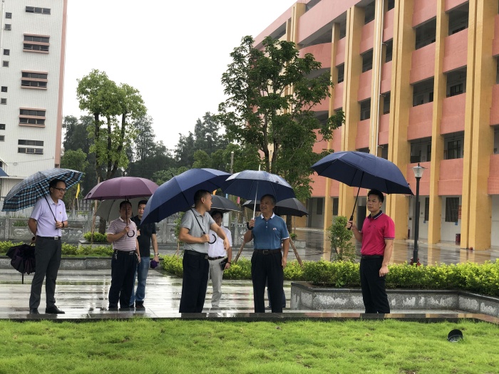 薛焯明、姚華等一行人察看了課堂、食堂、宿舍、操場等校園環(huán)境,就學校教學管理、教學環(huán)境、校區(qū)安全、食堂衛(wèi)生安全等方面進行了指導檢查,聽取了盧新泉校長關于新學期的工作思路及學校建設情況匯報,對學校開學的各項工作給予了充分肯定,察看了暑期各建設項目的完成情況并給予指導性意見。