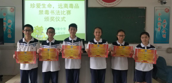 經(jīng)過評委老師們的認真審核,最后評出了一等獎4名,二等獎6名,三等獎10名。由德育處宋維華主任為獲獎的同學(xué)們頒發(fā)了獎狀,以此激勵同學(xué)們在養(yǎng)成良好書寫習(xí)慣的同時,也要將禁毒種子深植心中,將禁毒進行到底。
