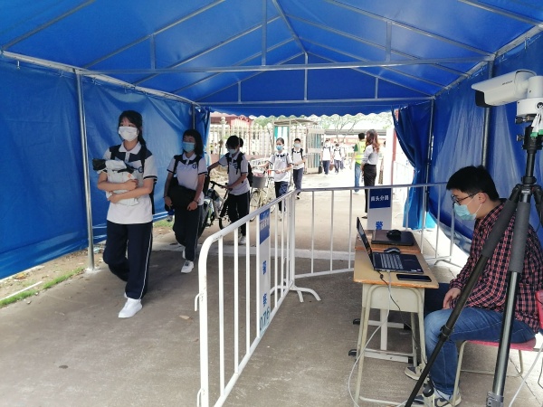 5月11日早上初一、初二級學生返校時,人體熱感測溫系統(tǒng)正式投入使用。測溫系統(tǒng)可以快速為師生及其他入校人員測量體溫,做到“隨走隨測”,減少入校人員的停留時間,避免擁堵情況的出現(xiàn)。如果入校人員出現(xiàn)體溫異常,系統(tǒng)會自動報警,能夠做到早發(fā)現(xiàn)、早診斷、早治療,最終達到控制傳染源的目的。相比傳統(tǒng)的人工測溫方式,人體熱感測溫系統(tǒng)更為簡便高效。