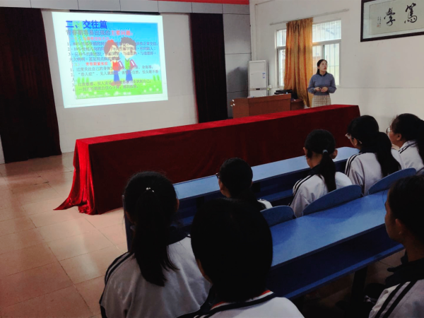 2019年3月29日,黃圃華洋學(xué)校組織初中部150多名女生,在階梯室開(kāi)展以“以品修身,超越自我,活力青春”為主題的專(zhuān)題講座。講座由學(xué)校德育處李夢(mèng)桃助理主講,艾明淑主任出席了活動(dòng)。
