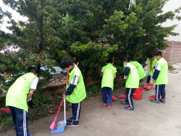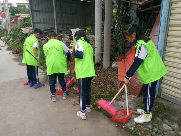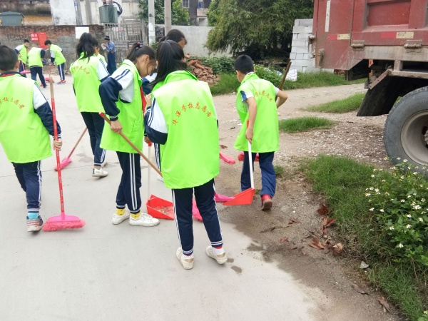 活動開始,少先隊員們興高采烈地拿著勞動工具,一個個精神抖擻,不怕臟不怕累,爭先恐后干得熱火朝天。有的拿著掃帚清理道路,有的拿著鏟子鏟粘地面比較緊不易打掃的垃圾,還有的同學兩人一組抬著垃圾桶來回的搬運著垃圾,同學們個個手腳并用,將一處處的垃圾清掃一空,老師們也身先士卒,參與到活動中來,同學們見狀更是倍受鼓舞,干得更加積極,師生共同努力,掃得不亦樂乎,街道上、衛(wèi)生死角里到處都可以看見揮舞著的掃把和同學們辛勤的汗水,現(xiàn)場秩序井然,氣氛熱鬧非常。通過同學們近一個小時的努力,路上展現(xiàn)出一番新的亮麗景象,周邊的村民們也露出了贊許的目光。