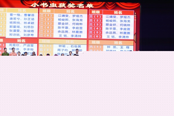 在節(jié)目匯演之中,穿插了兩次表彰。既表彰了經(jīng)典詩歌書獲獎的同學(xué),也表彰了第十九屆讀書節(jié)的“小書蟲”。