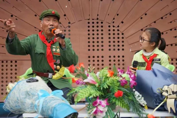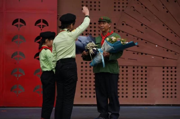 最后,學校領袖團的同學代表對何爺爺進行了簡單的采訪:1、何爺爺對我們少先隊員有什么期望嗎?2、現(xiàn)在的中國軍事與以前相比發(fā)生了哪些變化?3、當年打戰(zhàn)時,你們的生活條件艱苦嗎?何爺爺對以上三個問題進行了具體詳細的回答,并給予同學們鼓勵,希望同學們珍惜今天來之不易的幸福生活,好好學習天天向上。