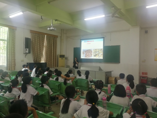 此次活動由廣東新導(dǎo)傳媒有限公是的李清春老師以《夏季食品安全風(fēng)險》為主題進(jìn)行大講堂活動。主要講授食品安全的概念;夏季食品安全知識;食物中毒;外出就餐如何吃得干凈衛(wèi)生;預(yù)防食物中毒的方法等五個方面進(jìn)行介紹,同時還提醒學(xué)生路邊攤食品、“五毛”辣條的危害,呼吁大家不購買不食用那些對身體健康有害的食品。現(xiàn)場設(shè)置宣傳咨詢攤位,為答對的小朋友派發(fā)小禮品。
